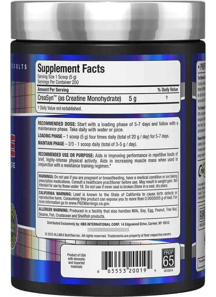 Allmax Creatina Monohidratada 1000g (200 Porciones) Creasyn Sin Sabor