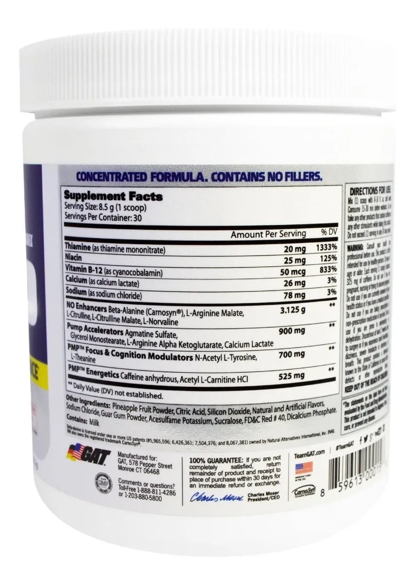 Pre Entreno Gat Sport Pmp 30serv 255g Dlc P11 Sabor Raspberry Lemonade